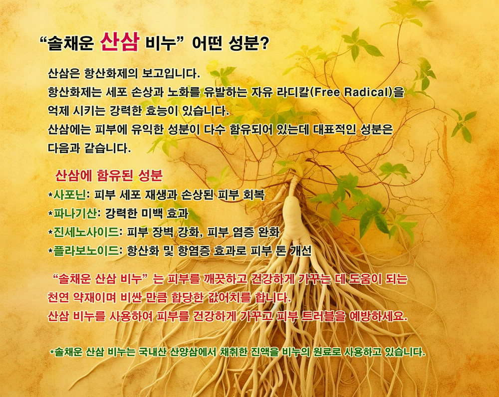 “솔채운 산삼 비누” 어떤 성분이 피부에 도움을 주나요?